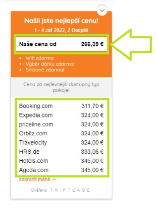 The "Price Check" price comparator in the booking form compares the prices of several retailers with our offer.